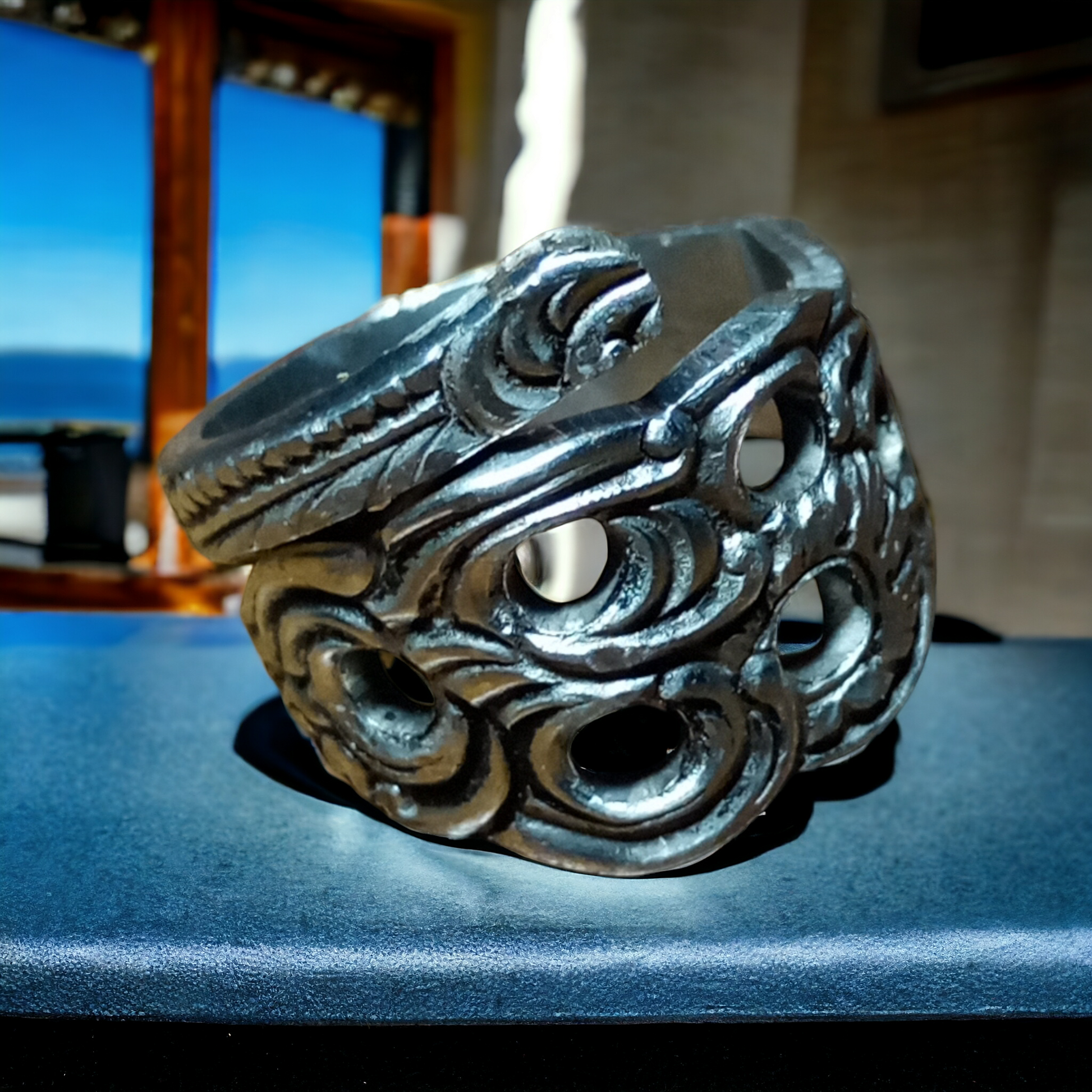 This ring evokes the feeling of a gentle wave beneath a vast, blue sky. Its unique design captures the essence of movement and serenity, with a stunning blend of fluid shapes and calming blue tones. Sized at 6, it offers a perfect fit for a delicate finger, making it both a striking and personal piece.